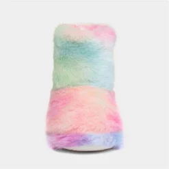 Inject some colour into their wardrobe with a pair of these rainbow coloured slippers. From Chatterbox, these girls’ bootie slippers have a super colourful faux-fur upper with soft cream lining. Their simple pull on fitting makes these perfect for independent kids. Not only do these slippers look great, they are also comfy thanks to their padded insole and warm lining.