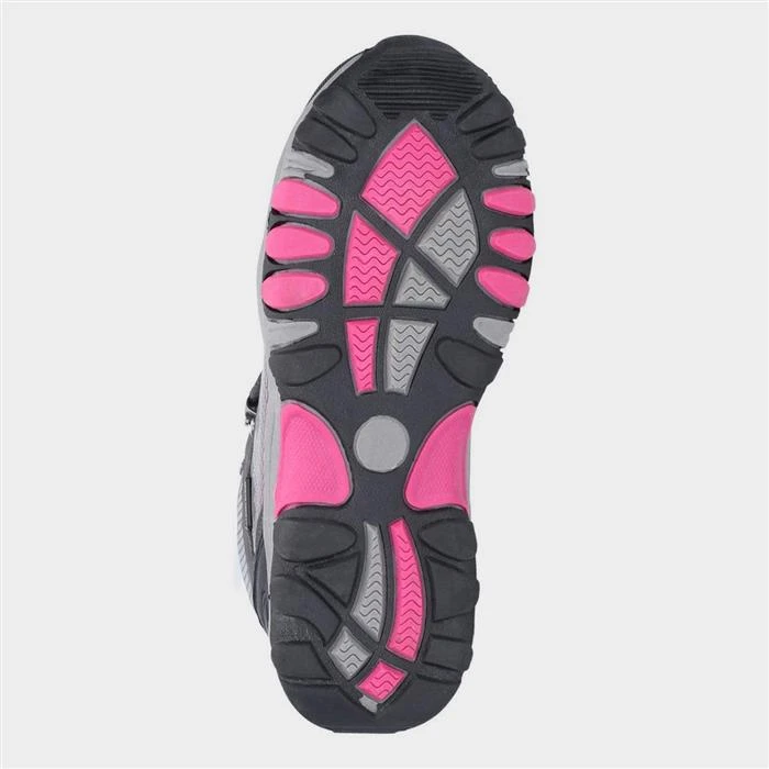 By Cotswold, junior boots in grey. Children’s hiking boot ideal for trail and hill walking. Designed with a waterproof membrane with lightweight and breathable, water-resistant Softshell(TM) upper. Front and rear pull loops allow for easy fitting and speed hooks for an easy-off.
