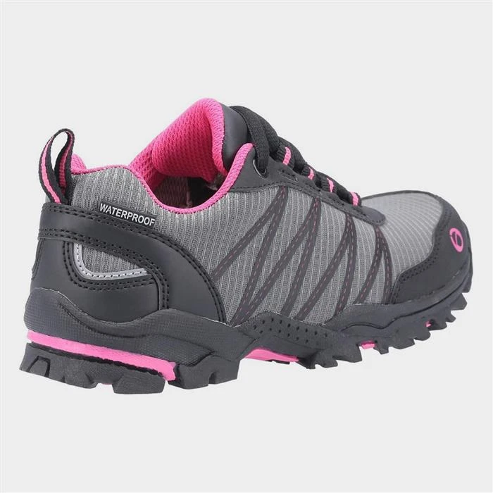 By Cotswold, Kids hiking shoe in grey, Littledean has a fully waterproof membrane, gusseted tongue and water resistant soft shell upper keeping little feet dry. This style features a removable lightly cushioned EVA foam footbed for superior comfort