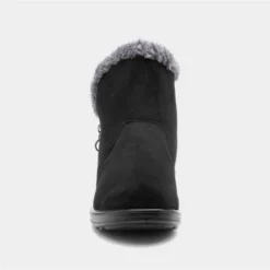 Keep warm this winter with these Olivia women’s boots from Cushion Walk. They feature a black faux-suede upper with stitch detailing, and a faux-fur trim. They’re easy to slip on, and their side helps with fitting, while their soft, faux-fur lining and insole ensures maximum comfort, and warmth. Additionally, their low wedged heel is gripped for stability. Essential for the colder weather.