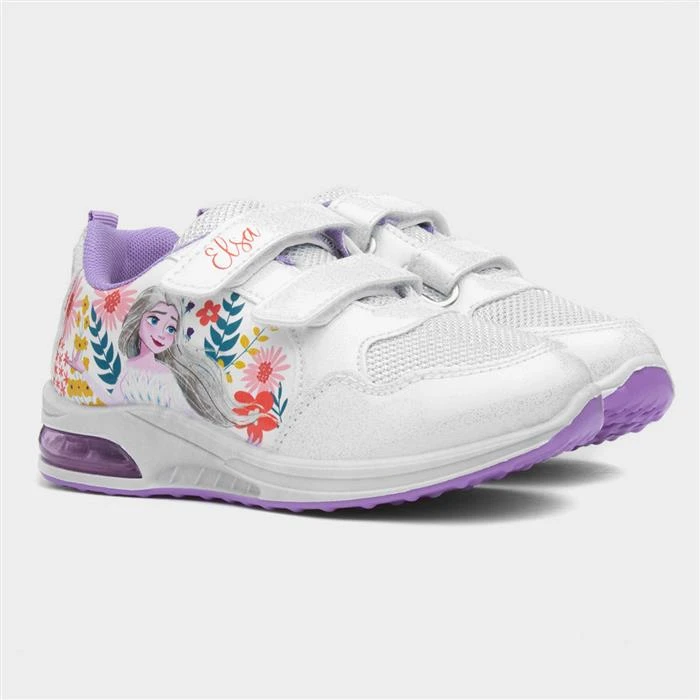 These Disney Frozen kids’ trainers feature a white glitter upper with a silver mesh toe, and Elsa appearing on the side. Their double easy fastening straps helps with an easy and secure fitting, and their gripped outsole keeps them steady. They also light-up when they walk!