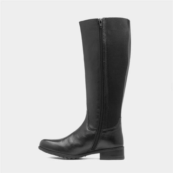 Reach new heights in these Cate women’s boots from Dr. Keller in black leather. A zip-up fastening allows a quick and easy fit, while their elasticated back allows a stretch fit around the calf. Their insole ensures comfort, their low heel adds height, and their tread gripped outsole adds maximum stability to this sleek boot.
