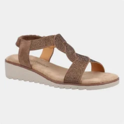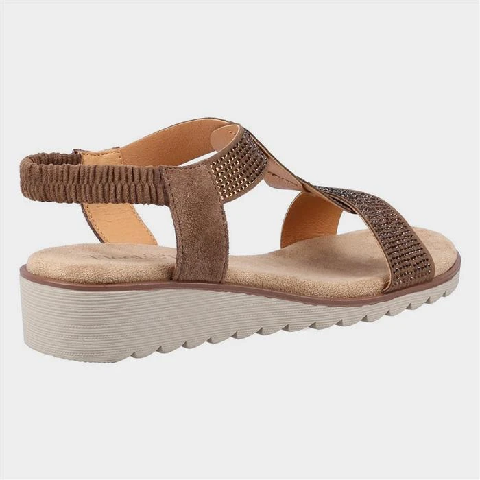 By Fleet & Foster, Hyacinth womens sandals in brown. An Open toe touch fastening leather sandal featuring a memory foam footbed with cushioning and a slight heel.