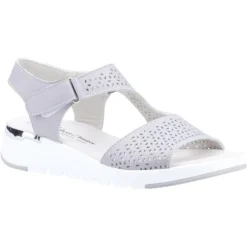 By Fleet & Foster, Valencia womens sandals in grey leather. Open toe touch fastening leather sandal from UK label, Fleet & Foster. Valencia features a memory foam footbed with cushioning.