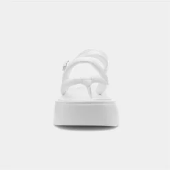 From Heart, the ZA7 women’s sandals in white. They feature a toe-post, strappy upper with a stretch buckle strap for a secure fit, and a lightweight fit. Their padded insole offers comfort to the heel and sole, while their chunky outsole adds height, style and a stable grip to this Summer must-have.