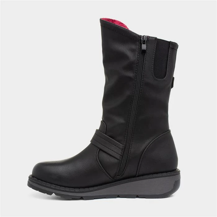 Designed by Heavenly Feet, these women’s boots embrace a black upper with double buckle detailing. They feature a zip up fastening with an elastic insert for quick and easy fitting, while their soft red warm lining and padded insole will keep your feet cosy and comfortable.