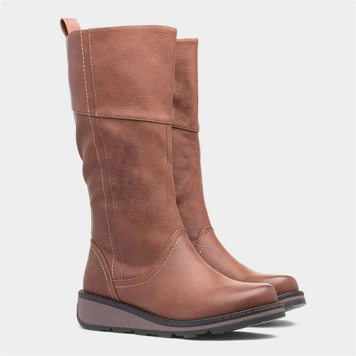 These Robyn high leg boots from Heavenly Feet are in a chocolate brown with a matching zip closure for a secure fit. An elasticated strip provides a good fit around the calf and a pull tag ensure a quick fitting. They also feature a soft, warm leopard print lining and a padded sole for comfort, while the matching brown wedge heel provides height and a gripped sole ensures durability, making these boots perfect for autumn.