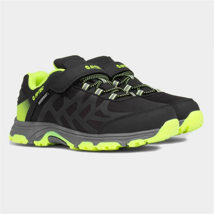 From Hi-Tec, these Yomp kids black and lime green shoes are the perfect pair for your little explorers this season! Their lightweight, softshell upper offers an extremely comfortable fit and greater durability, while a Dri-Tec waterproof membrane ensures dry feet. They feature an elasticated lace, and an easy fasten strap, for a custom, comfy fit. These shoes are great for going on walks or mini hikes!
