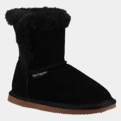 By Hush Puppies, these Ashlynn kids slippers in black are a classic boot style slipper. It is crafted with real suede moccasin upper and cosy faux fur lining. It’s flexible yet lightweight TPR sole allows the wearer to manoeuvre freely whilst maintaining secureness.