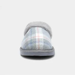 From Jo & Joe, these women’s Shetland mules feature a slate grey tartan check upper with a slate grey faux-fur trim, lining, and insole that’s offers comfort and warmth. They also feature a grooved gripped outsole that ensures durability, and stability. Perfect for those cold, winter nights, or wrapped up under the tree!