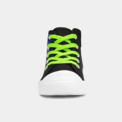 From Jurassic World, these kids’ canvas shoes feature a black upper with lightning detailing and the Jurassic World logo. Their bright green laces and side zip fastening allow a quick and easy fit, and their bump-toe outsole offers protection to the upper and a stable grip.