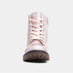 These Leanne boots from Lilley Junior have a pink glitter upper with a star print. They’re easy to fit with a side zip and lace up fastening along with a pull tab, and their cleated outsole and heel keeps them stable.