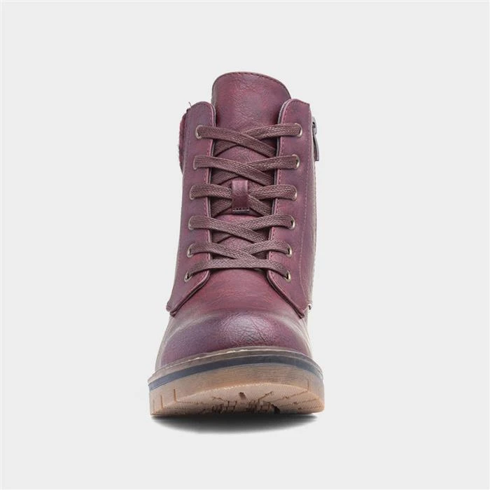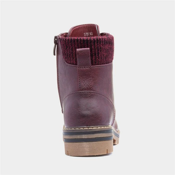 From Lilley & Skinner comes the Iceland ankle boot in a bordeaux dark red. Featuring a lace up and zip up fastening, knitted collar, soft and warm lining, and a cleated outsole and insole for stability and durability.