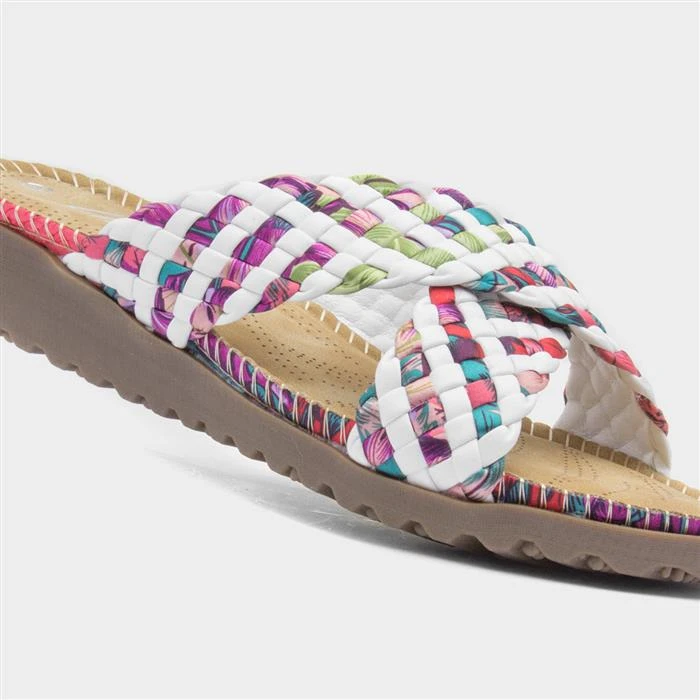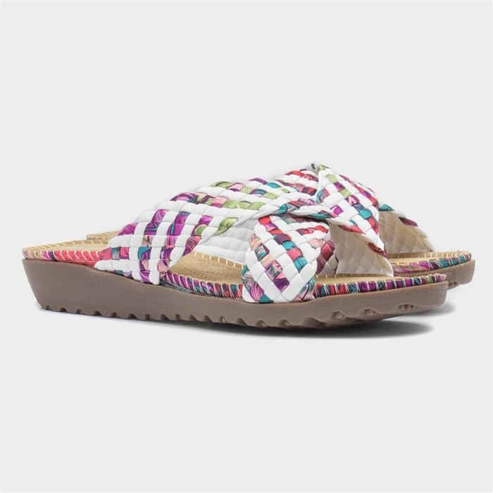 By Lilley, these women’s sandals feature a white and silk scarf-style plaited upper. They’re easy to slip on, comfortable with their padded insole, and breathable too. A low wedged heel adds height, while a jagged outsole ensures stability.