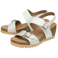 Designed by Lotus, these Brynlee women’s sandals in white feature an animal printed toe strap adding to the aesthetic of this highly versatile style. They feature a leather upper with buckle detailing that offers a secure fit, and an on-trend serrated sole unit with a 6cm cork effect wedge heel providing height.