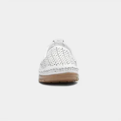 The Cypress women’s casual slip on in white, designed by Lotus, features a leather upper with laser-cut design for breathability, with elasticated gussets for an easy slip on, and includes a padded insole for comfort and support. These shoes have a great lightweight feel, giving you the ideal comfort, while their outsole is cleated for stability. These comfortable shoes also bring added height with their low wedged heel.