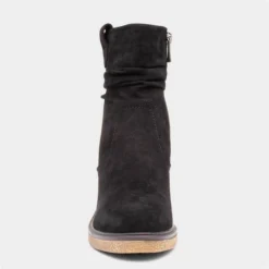 Add a stylish touch to your look with the Danica womens boots from Lotus. These black boots feature a faux-suede and ruched detailing. The zip fastening allows quick and easy fastening, while the soft lining keeps feet warm. There is a contrast cork effect block heel which adds height to your look. Pair with either jeans or a dress this season for an on trend look.