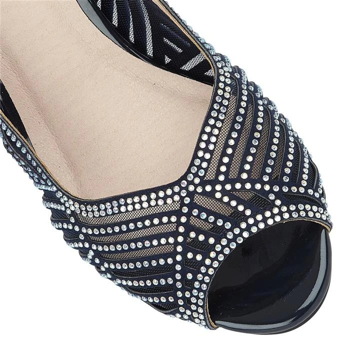 Designed by Lotus, the Immy women’s shoes in navy features an open toe, allowing your feet to breathe. They feature diamantes in a cut out detailing that expose a semi-sheer mesh lining and a scalloped edge. Their 5.5cm block heel offers height and stability as well as encompassing a mirrored plate adding to the look of this shoe. Pair with the Nara clutch bag for a co-ordinated look.