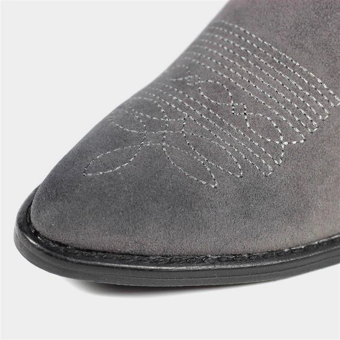 By Lunar, Cottonwood womens boots in grey. The Cottonwood, a classic, western style, ankle boot. Available in both grey or camel, finished in a beautiful faux suede with delicate stitching detail, you can be sure these will be your go-to boots. The low block heel and the padded insole offers comfort all day long.
