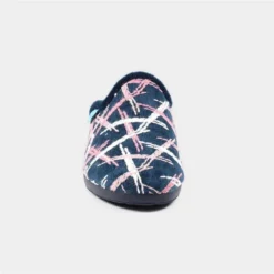 By Lunar, Erin womens slippers in navy. The Erin mule, a simple and classic design with a small, wedged heel for added comfort. The hardwearing sole is an added bonus, allowing for both in and outdoor use, perfect for pottering around the garden.
