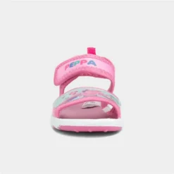 From Peppa Pig, these kids sandals feature a pink upper with Peppa Pig and other characters appearing on their sides. Their easy fasten strap allows for a quick and secure fit, while their open toe makes them ideal for warmer days. A must-have for your little one!