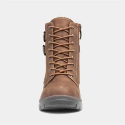 The Debbie boot in brown from Relife features a brushed effect upper, double buckled detailing, stitch detailing across the upper, and a lace-up and zip-up fastening for a quick and easy, secure fit. They’re warm and comfort with their faux-fur lining and soft, natural massaging insole, and their cleated, low heeled outsole with Soft Reflex System technology offers height, stability, and additional support to the heel.