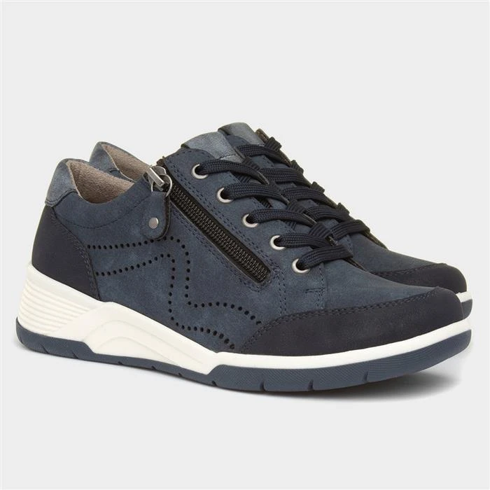 By Relife, these women’s casual shoes embrace a navy upper with stitched detailing on a wedged outsole. They feature both a lace up fastening and a side zip for easy fitting, while their padded insole and gripped outsole provides comfort underfoot.