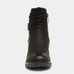 Designed by Relife, these women’s boots embrace a black upper with a knitted collar and decorative buckle and zip details. They feature a zip up fastening for quick and easy fitting, while their padded insole and soft warm lining ensure comfort underfoot. Additionally, the block heel and cleated outsole offer height and a stable grip. Perfect for work or play this season.