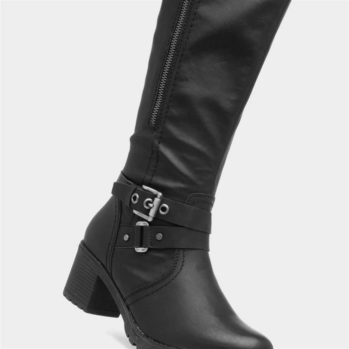 Designed by Relife, these black knee high boots will add warmth and style to your wardrobe. The boots embrace an all-black design with buckle details to the ankle for added decoration. With a handy side zip for quick and easy access and a comfortable round toe with a block heel adding height; these will be great for Autumn/Winter.
