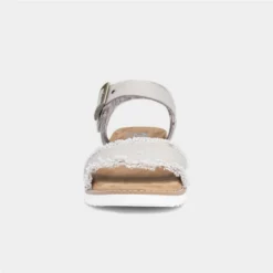 By Skechers, these Desert Kiss sandals feature a taupe canvas upper with ripped seam detailing. Their adjustable buckle allows a secure, customised fit while their slingback strap provides support. Their memory foam insole ensures comfort while their low wedge heel provides height. Their outsole provides a stable grip.