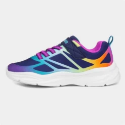 From Skechers, Flutter Heart Light Simply Love kids’ trainer. It features a pink and purple gradient upper with star, heart and glitter detailing. Their easy fastening strap and ribbon style laces ensure a quick and secure fit, while their heart shaped outsole lights up when they walk and provides flexibilty and stable.