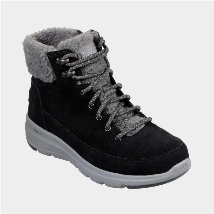By Skechers, Glacial Ultra womens boots in black. Stay warm throughout the season with the Skechers On-the-Go Glacial Ultra – Woodlands boot. This casual cold-weather boot features a suede upper with sherpa lining, Air-Cooled Goga Mat insole and cushioned Ultra Go midsole.