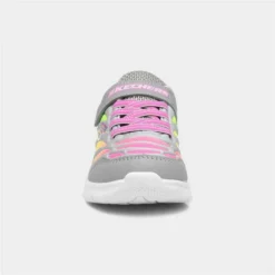 These Microspec Max girls trainers from Skechers feature a grey upper with multicoloured, gradient detailing and Skechers branding. Their bungee laces ensure a quick and easy fitting while their easy fastening strap ensures a secure fit. Their bubbled outsole provides comfort and stable grip. These are great from playtime or for P.E.