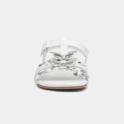Perfect for spring, these kids’ sandals feature a crisp white open toe upper with sparkly silver detailing, and 3-D glittery butterflies. A low heel adds some height, and a groove gripped outsole ensures stability. These sandals are comfortable, breathable, and pair well with dresses this Spring/Summer.