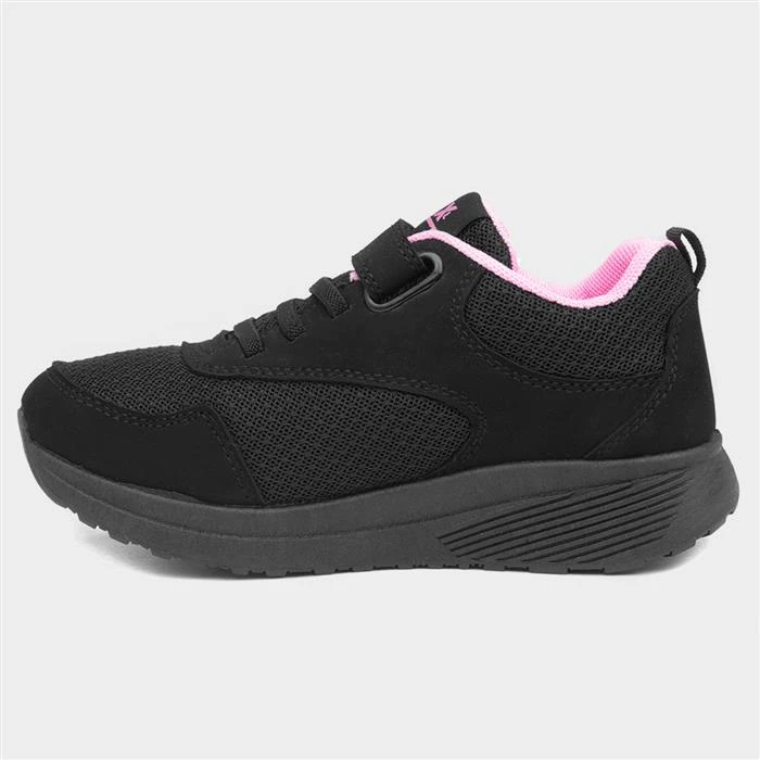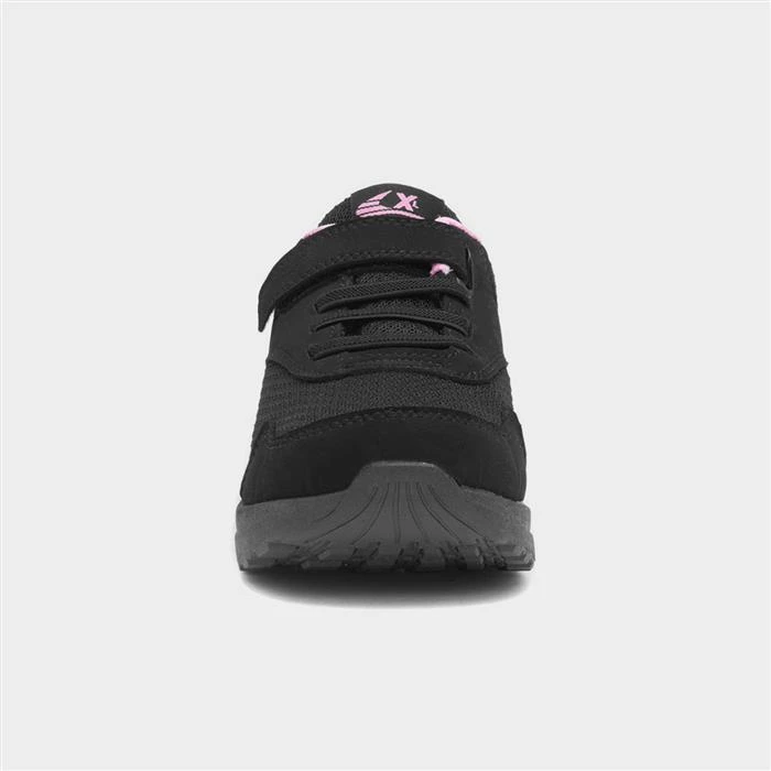 From XL, these girls’ trainers embrace a black upper with pink lining. They feature both elastic laces and an easy fasten strap for quick and easy fitting. while their padded insole and flexible outsole provides comfort underfoot.